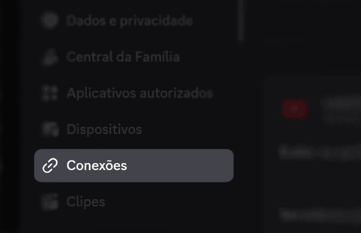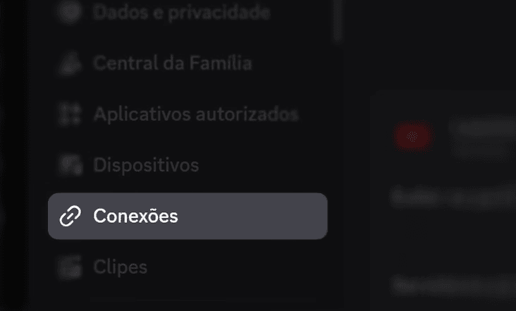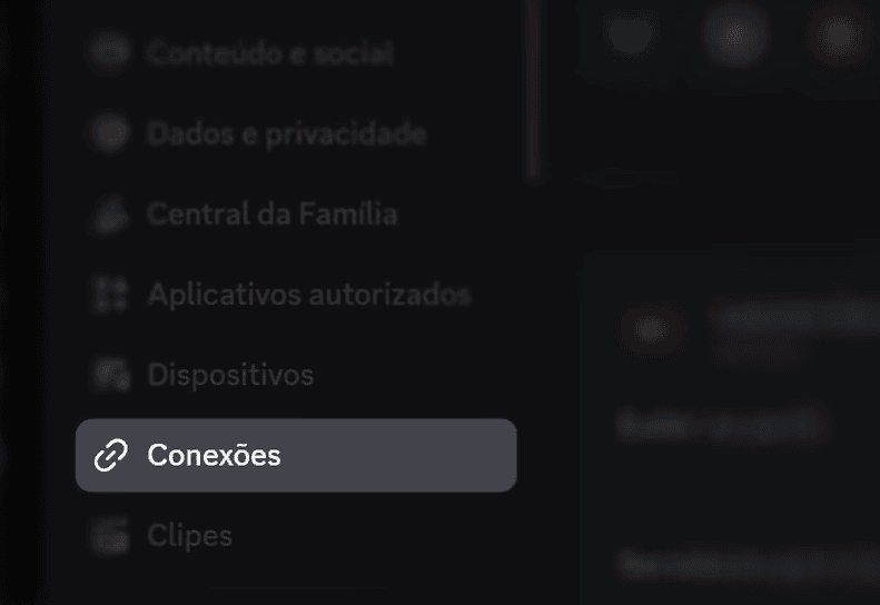 Essa aba aparecerá na primeira parte do menu à esquerda. Clique nela para aparecer todas as conexões do Discord com outros sites e programas.