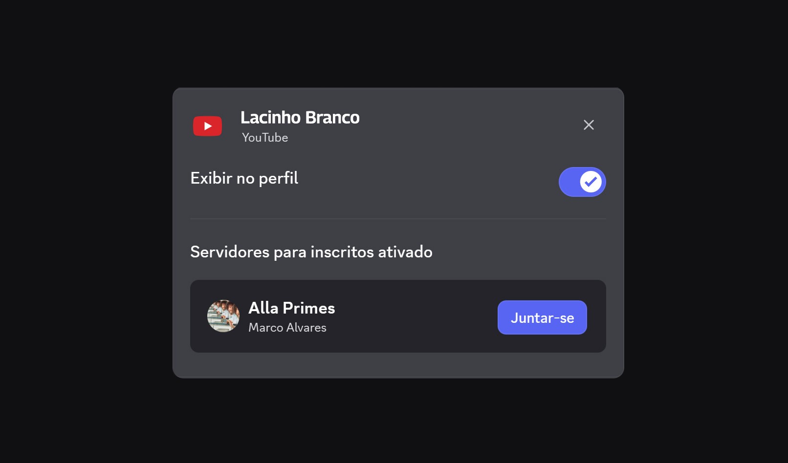 associe a sua conta do youtube com a do discord